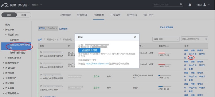 2. 单击 资源管理 > 弹性计算 > 续费/升级/弹性包/备案 。