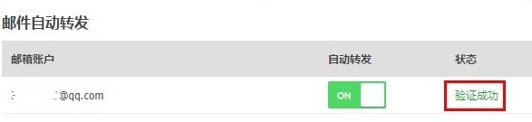 3、自动转发页面的转发状态必须同时为 ON 和 验证成功 时,转发规则才可生效。见下图: