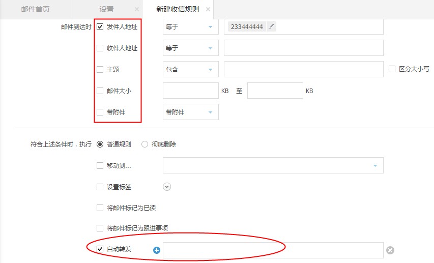 收信规则模块设置自动转发: