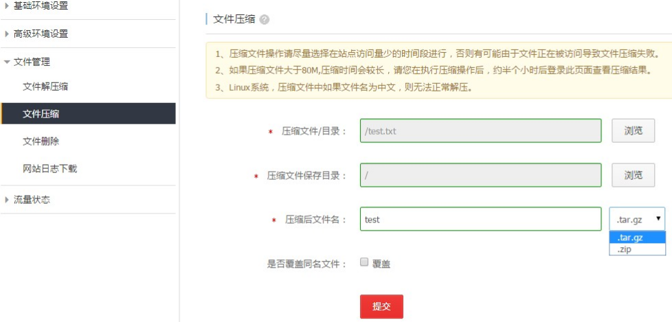 1. 登录云虚拟主机管理控制台 > 文件管理 > 文件压缩。
