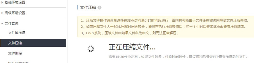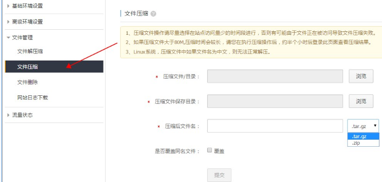 1. 登录云虚拟主机管理控制台 > 文件管理 > 文件压缩。